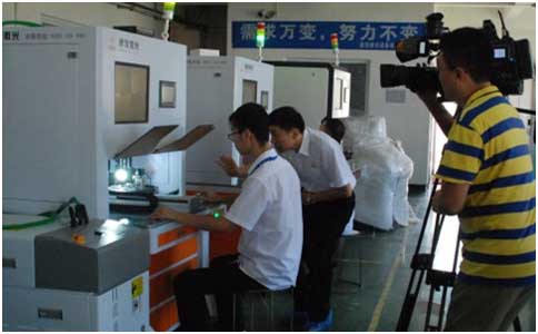 在鳳凰衛視的杜編導熱情的訪問后,通發激光副董事長王小峰帶領杜編導以及他的同事參觀生產車間,樣品車間,研發車間,了解通發生產的激光焊接機、激光打標機等。