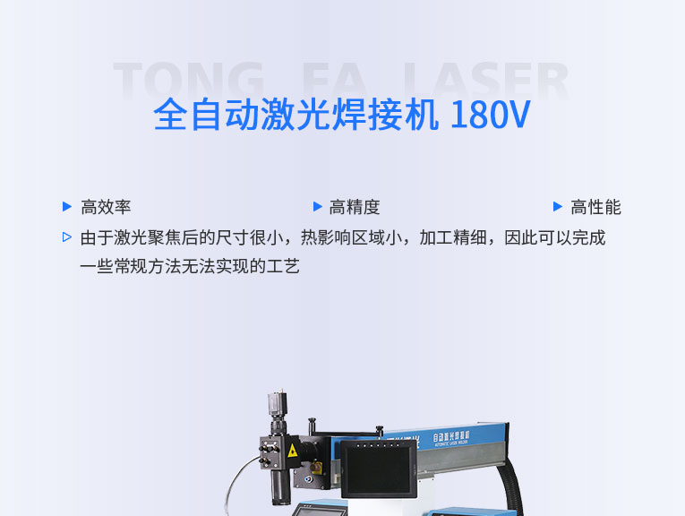 通發激光TFL-300V全自動激光焊接機,廣泛適用各種不銹鋼五金的激光焊接。可實現大多數0.8mm以內料厚五金產品的二維平面焊接。效率高,性能穩定,性價比高。配置精密運動控制器和工作臺高速運動實現焊接。