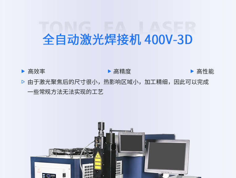 TFL-400V/500V-3D激光焊機是一款高穩(wěn)定性、大功率的焊機,滿足長時間生產(chǎn)的需要。大功率激光電源,大功率散熱系統(tǒng)滿足24小時大批量生產(chǎn)。機身采用高強度結(jié)構(gòu),保證精度、性能穩(wěn)定。控制系統(tǒng)是專為激光焊接量身定做的專業(yè)4軸控制系統(tǒng),穩(wěn)定性高,易學易懂易上手。擴展性強,可結(jié)合流水線、光電傳感器、氣動夾具等組合進行全自動無人值守式加工。
